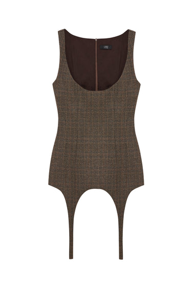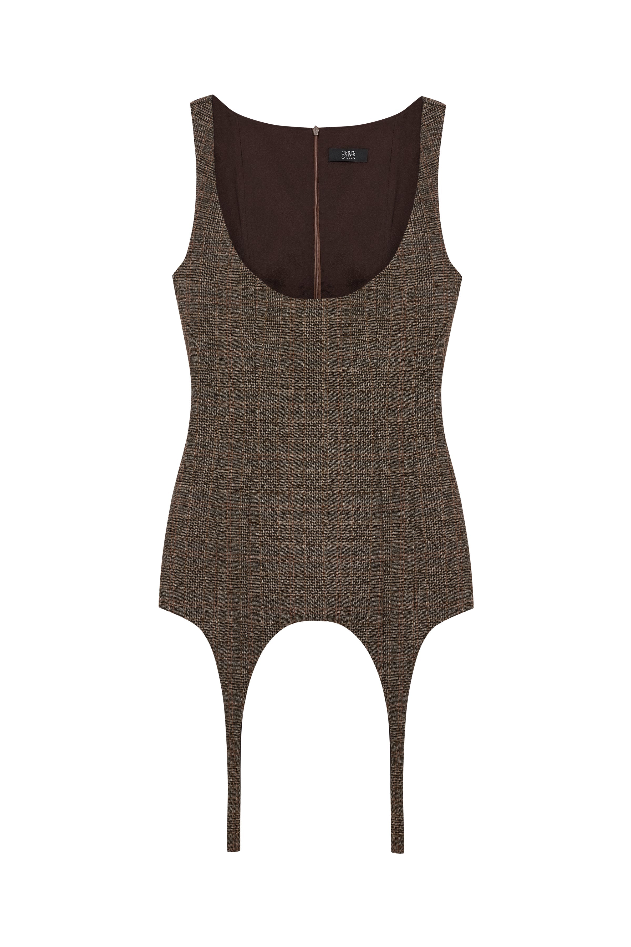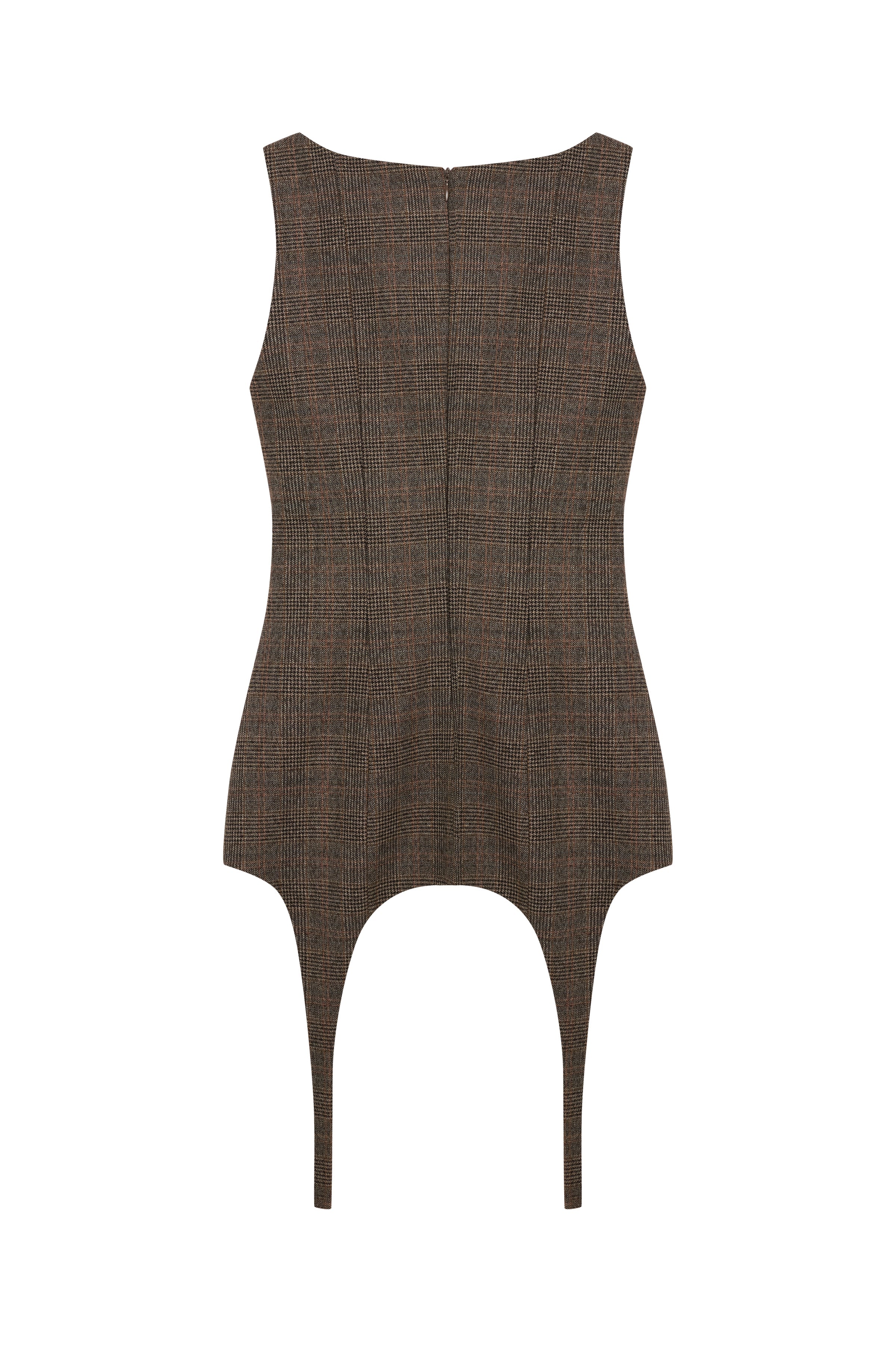 This sleeveless top crafted from tartan fabric features an elegant detailed hem that adds a refined touch to your ensemble. Its sleek silhouette offers a sophisticated look suitable for both casual and polished settings. Designed for comfort and style, it perfectly complements a modern, elegant wardrobe.