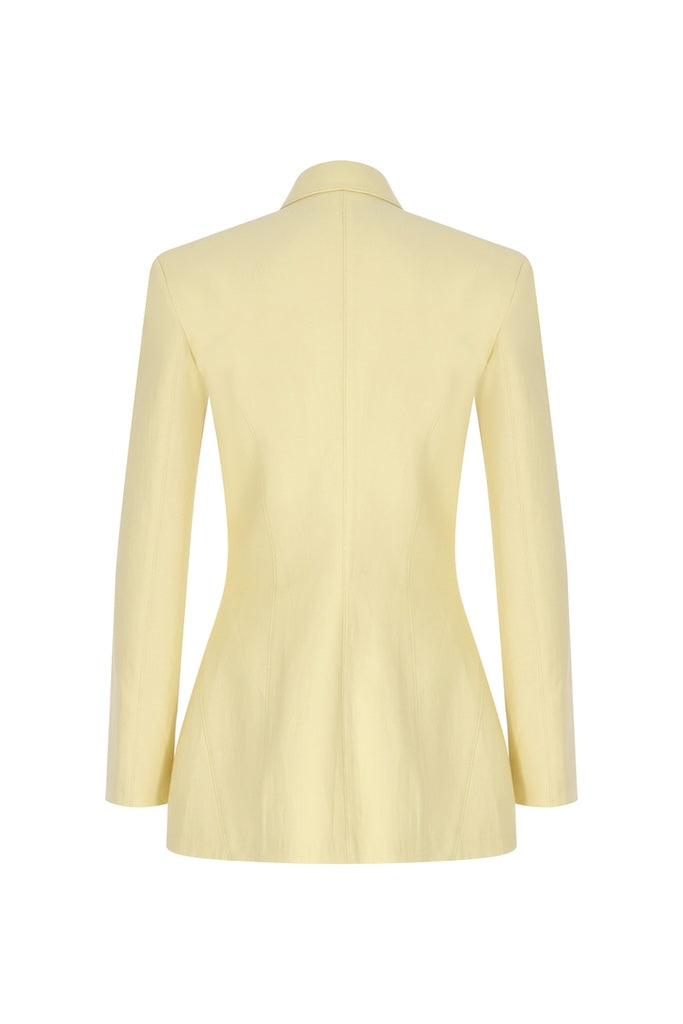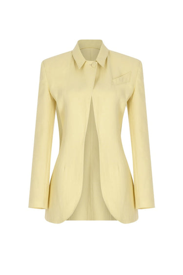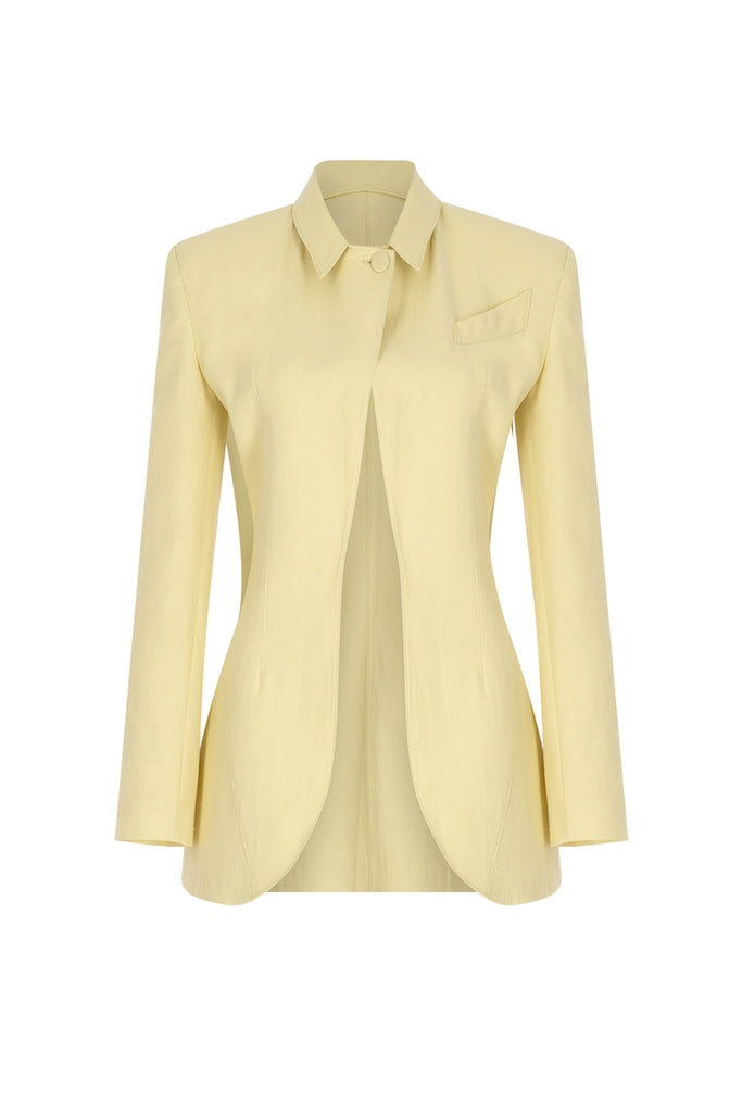 This fitted jacket features a distinctive A-shaped front opening, blending sharp tailoring with a modern silhouette. Its refined design enhances your figure while delivering a polished and sophisticated appearance, ideal for both professional and stylish settings.