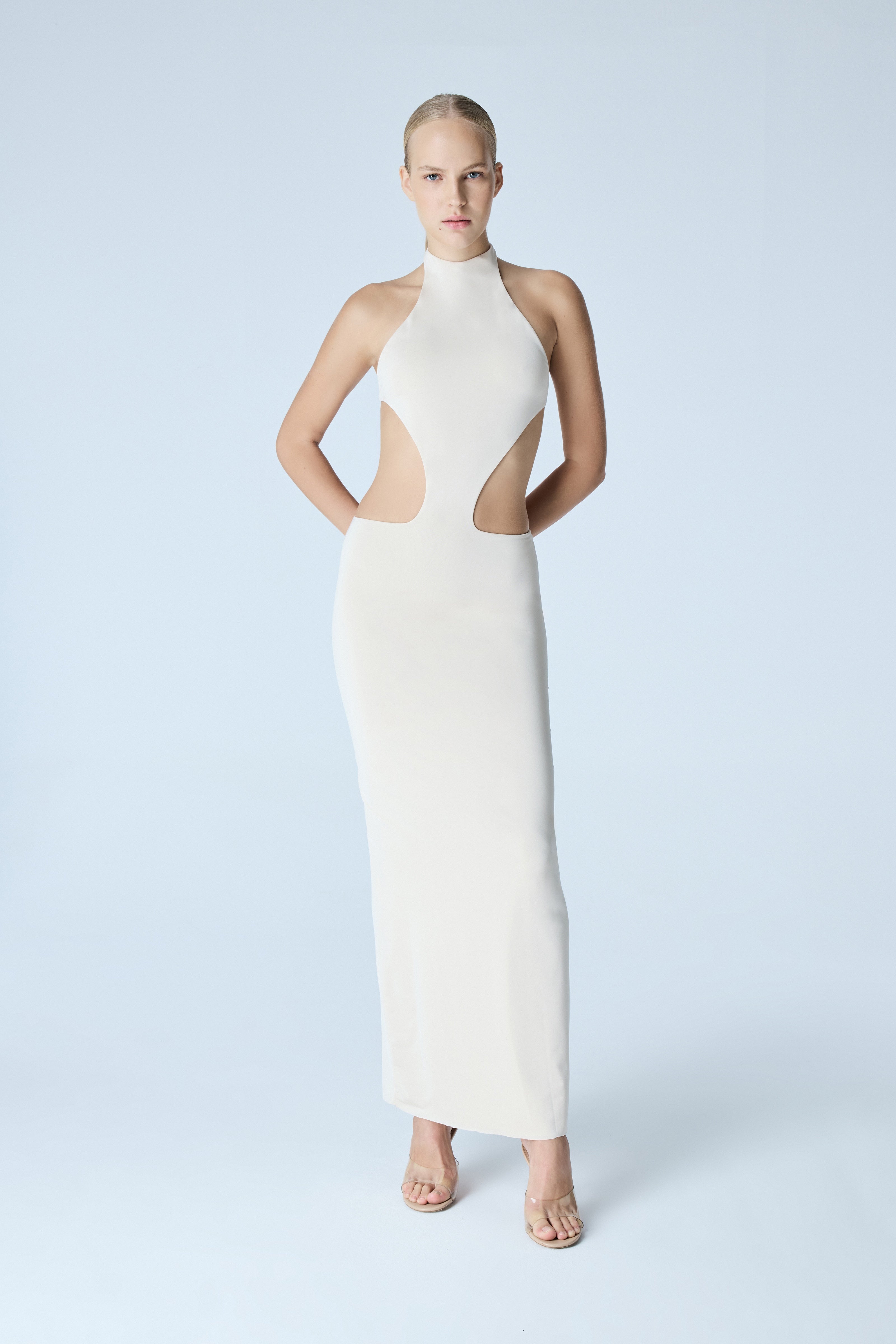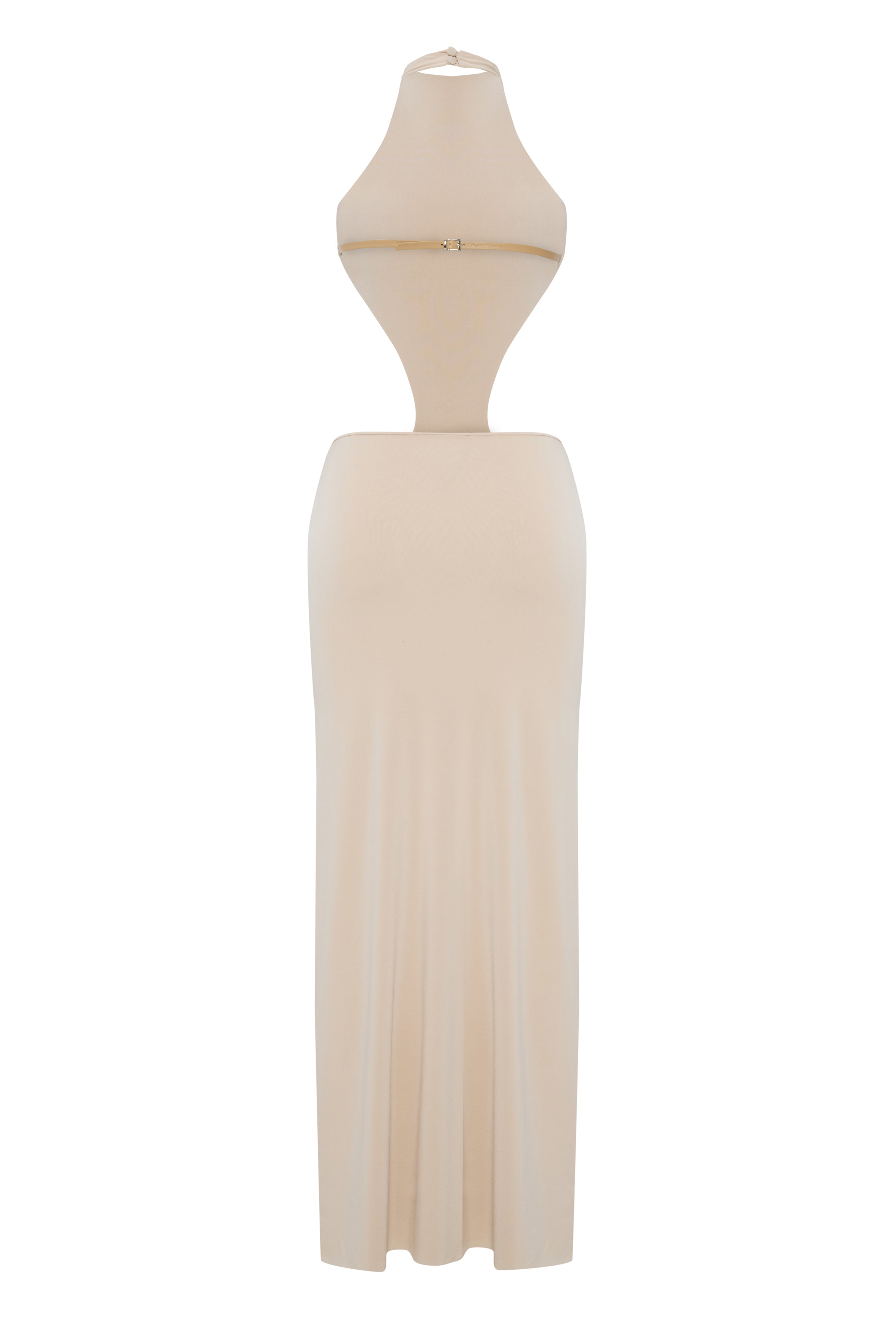 Elevate your wardrobe with our sophisticated Jersey Midi Dress featuring an alluring halterneck design and strategic cut-outs. The premium jersey fabric drapes elegantly against your silhouette, offering both comfort and refined style. Perfect for evening soirées or upscale daytime events, this dress effortlessly transitions from day to night with graceful versatility.