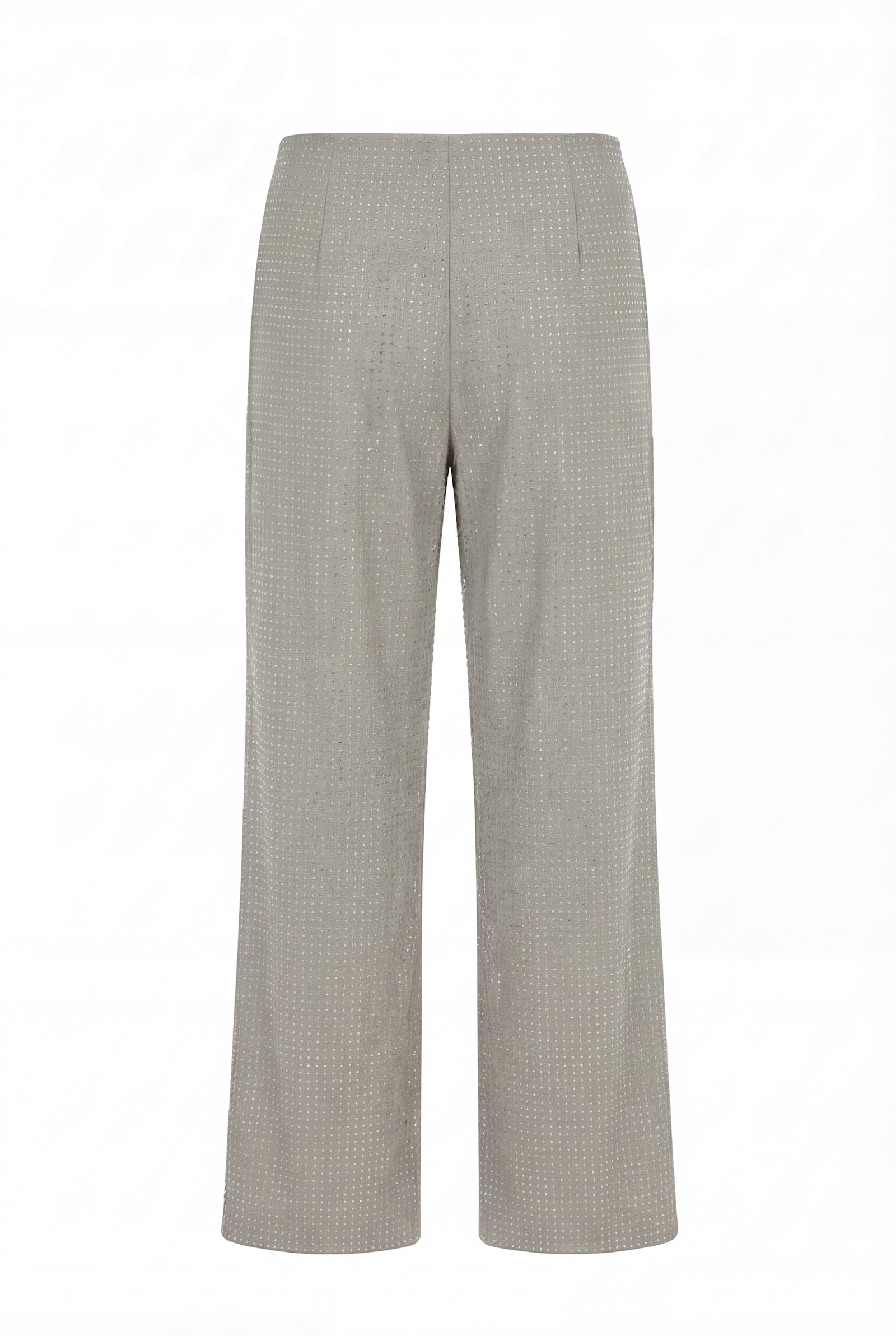 The Crystal-Embellished Trousers represent a striking fusion of contemporary design and refined craftsmanship. Adorned with carefully placed crystal accents, these trousers transform an everyday silhouette into a statement piece worthy of special occasions. The luxurious embellishments catch light beautifully, adding dimension and visual interest without overwhelming the elegant cut. Constructed from premium fabric with meticulous attention to detail, they offer a sophisticated alternative to conventional formal wear. Ideal for those who appreciate understated opulence, these trousers pair beautifully with minimalist tops to let the crystals shine as the focal point of your ensemble.