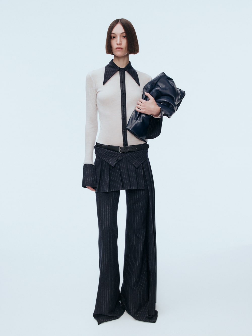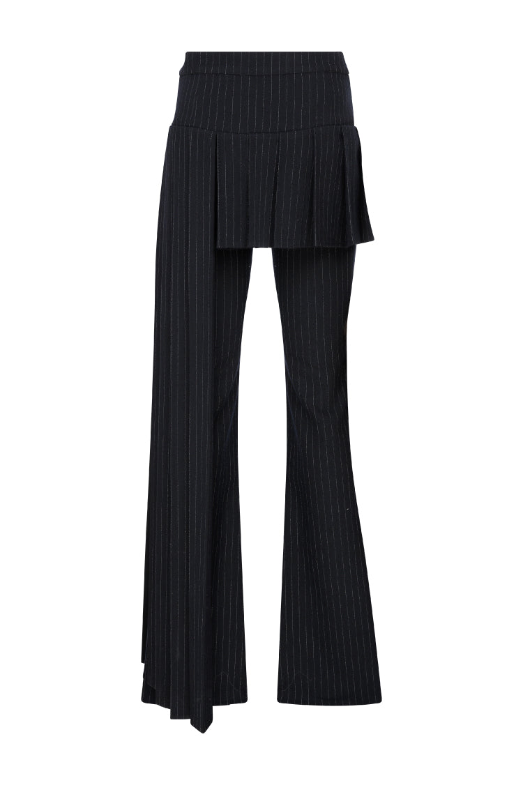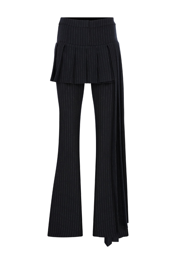 Elevate your wardrobe with our STRIPED SKIRTPANT, a refined fusion of classic tailoring and contemporary design. The sophisticated silhouette combines the fluidity of a skirt with the practicality of pants, while the elegant stripe pattern creates a slimming visual effect. Crafted for the discerning individual who appreciates versatile, polished pieces that transition seamlessly from professional settings to evening engagements.