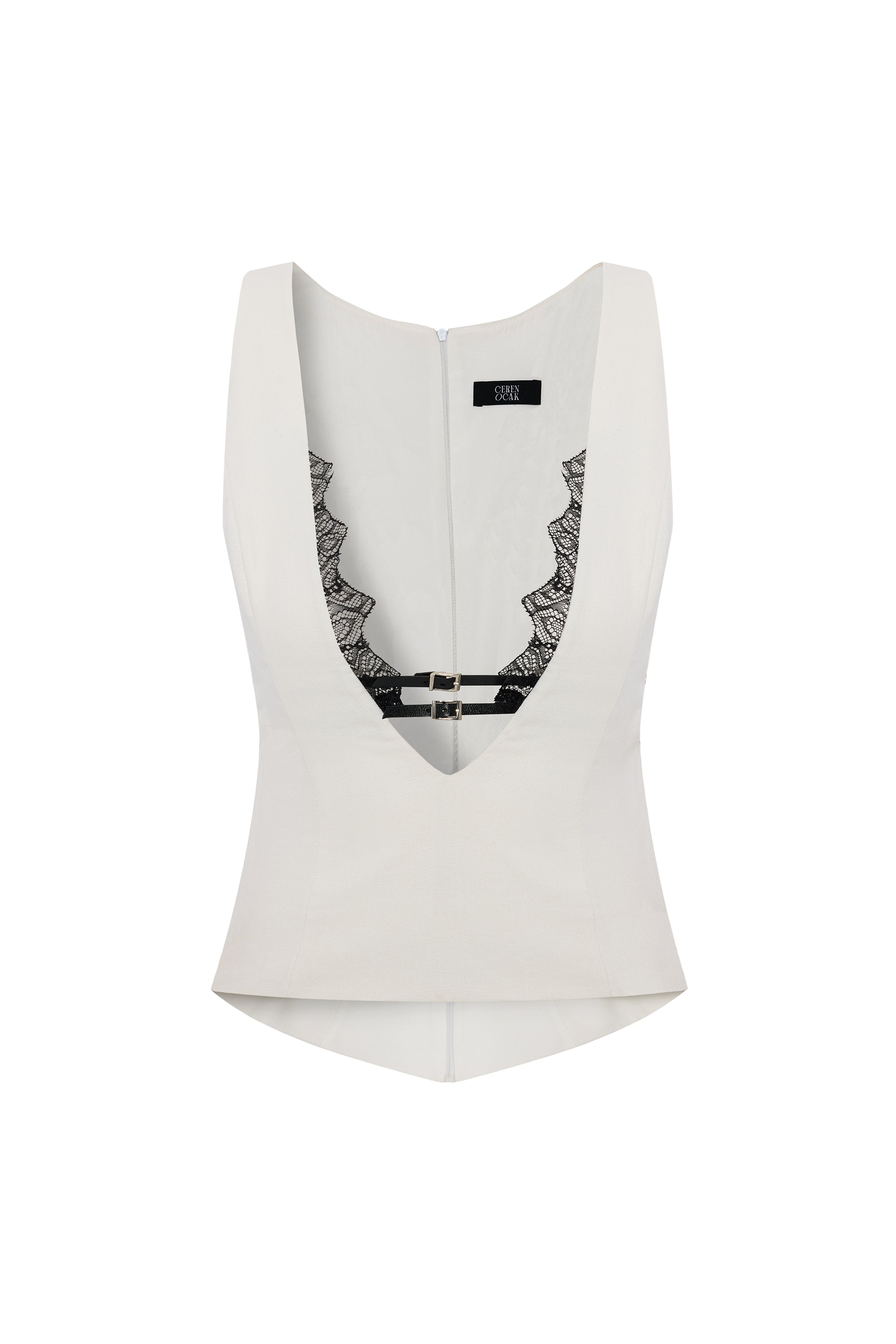 Elevate your wardrobe with our exquisite LINEN LACE DETAILED TOP. Crafted from premium linen fabric, this sleeveless design offers breathable comfort with refined elegance. The delicate lace detailing adds a touch of sophistication to this versatile piece, perfect for both casual daytime events and evening soirées. The natural linen texture provides a luxurious drape that flatters every silhouette.