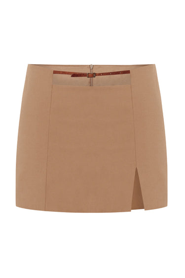 Upgrade your wardrobe with our BELT DETAILED MINI SKIRT. The leather belt adds a touch of luxury while the slit on one side adds a hint of allure. Made from a high-quality cotton elastane fabric, it offers both comfort and style. Elevate any look with this sophisticated and exclusive mini skirt.