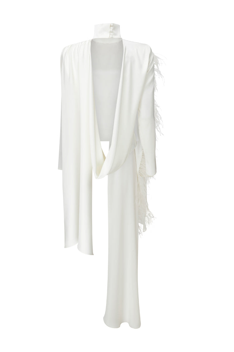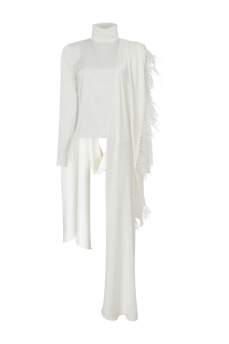 Elevate your ensemble with our CAPE TOP, a refined statement piece crafted from luxurious sateen fabric. This sophisticated design features an elegant cape silhouette with a graceful shawl detail that drapes beautifully over the shoulders. Perfect for special occasions or adding polish to your everyday wardrobe, this versatile top combines timeless elegance with contemporary flair.