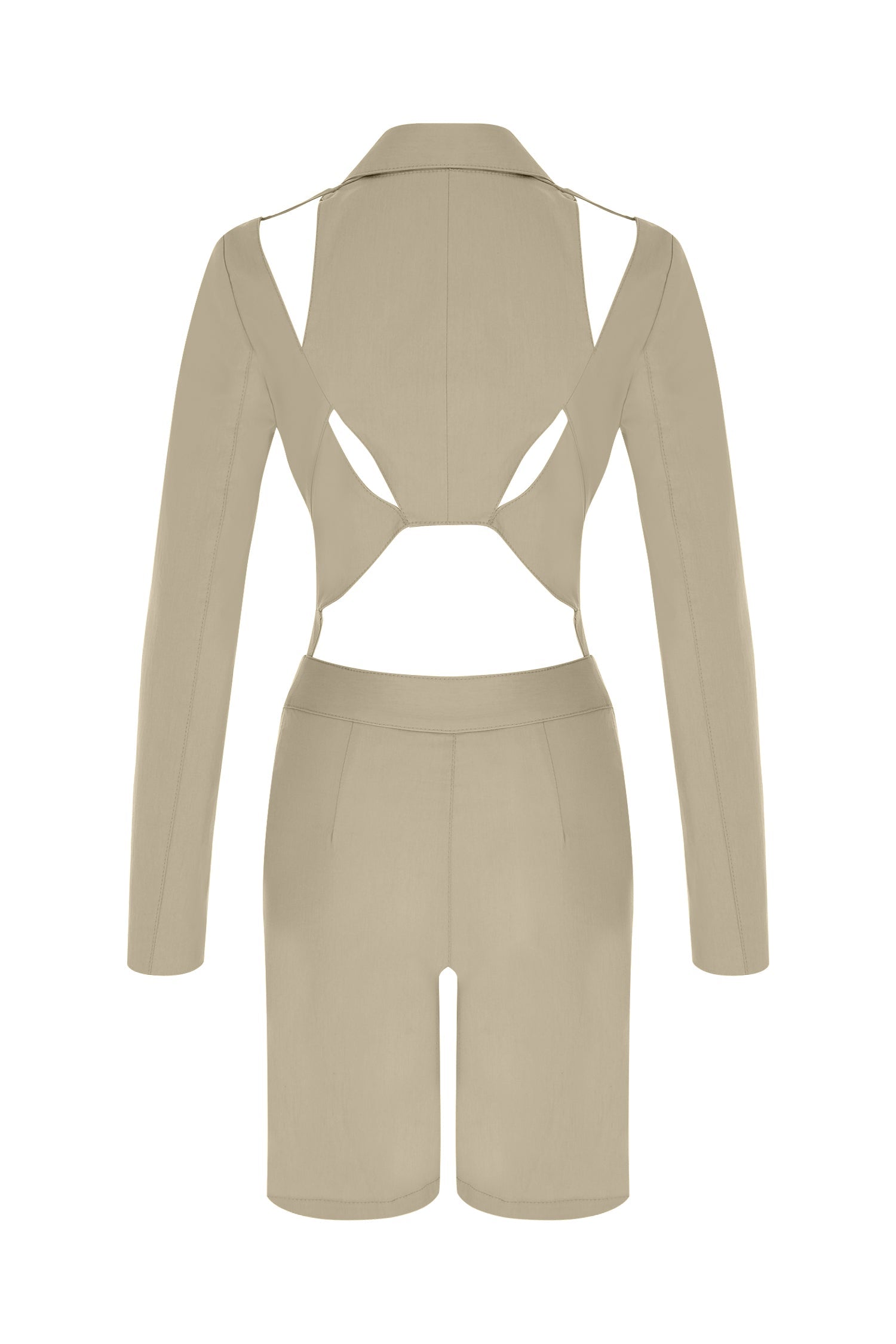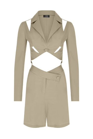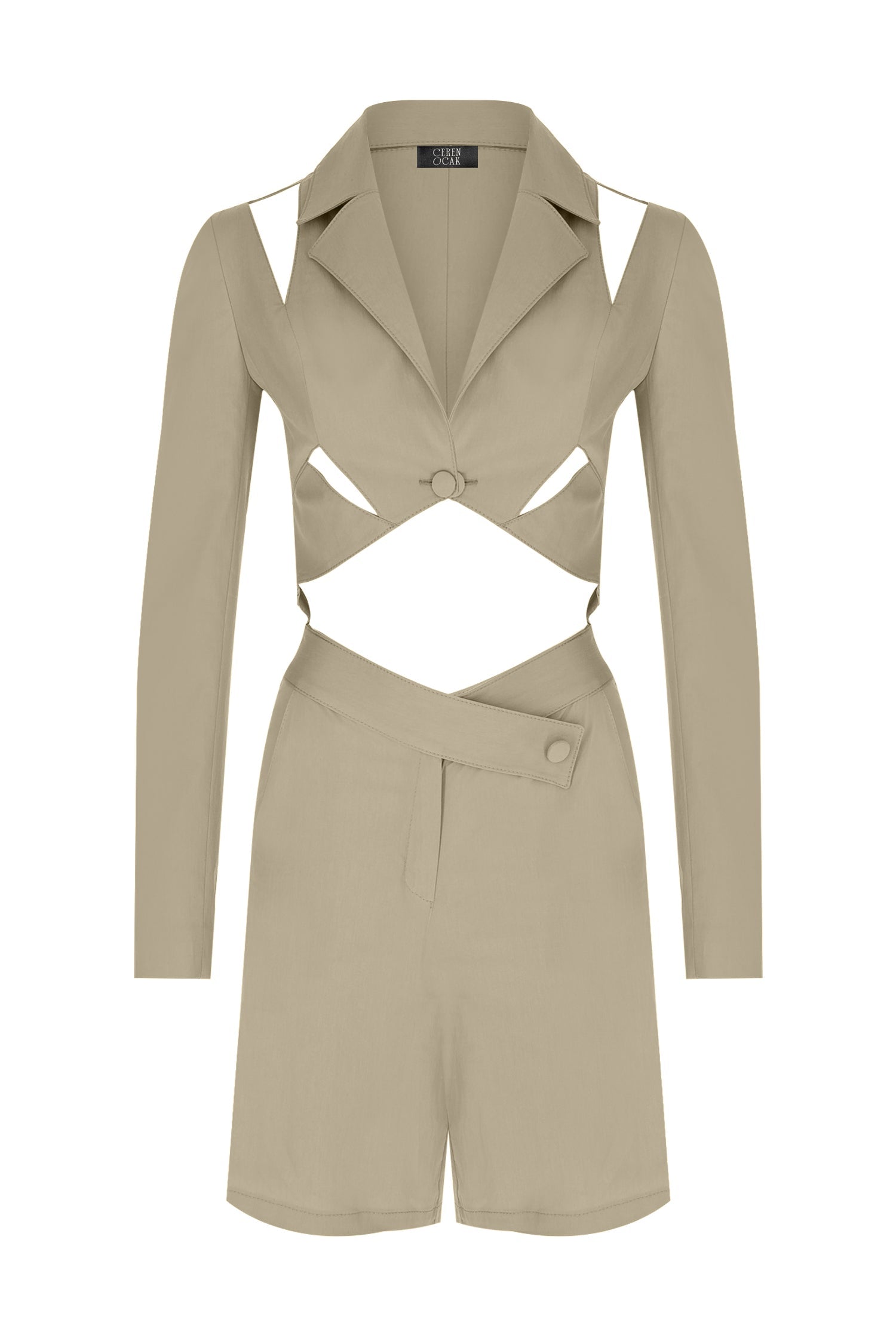 Elevate your wardrobe with this meticulously designed cut-out jumpsuit. Featuring strategic openings that flatter your silhouette, this sophisticated piece transitions effortlessly from day to evening occasions. The short length offers both comfort and contemporary appeal, while the refined construction ensures a polished look that commands attention without effort.
