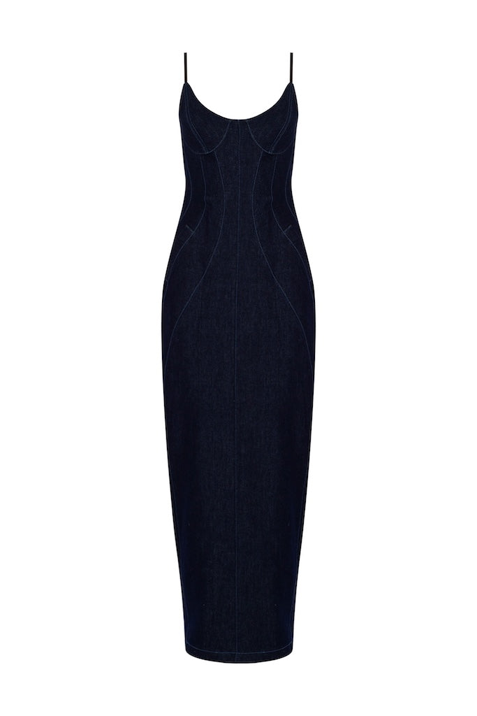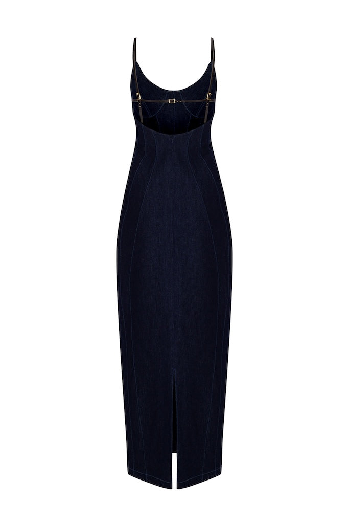 This denim pencil dress combines classic tailoring with modern elegance. Its sleek silhouette flatters your figure, while the durable denim fabric ensures comfort and longevity. Perfect for both professional settings and stylish evenings, it offers a refined look that transitions effortlessly from day to night.