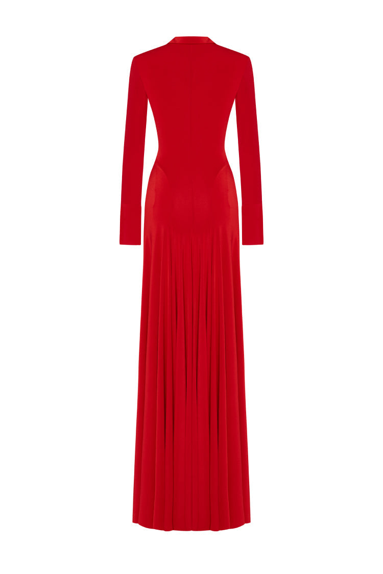 Indulge in luxurious comfort with our DRESS IN JERSEY. Featuring a deep V-neck and elegant collar detail, this long sleeve dress crafted from soft jersey fabric exudes sophistication. Perfect for any occasion, this dress will make you feel confident and stylish all day long.