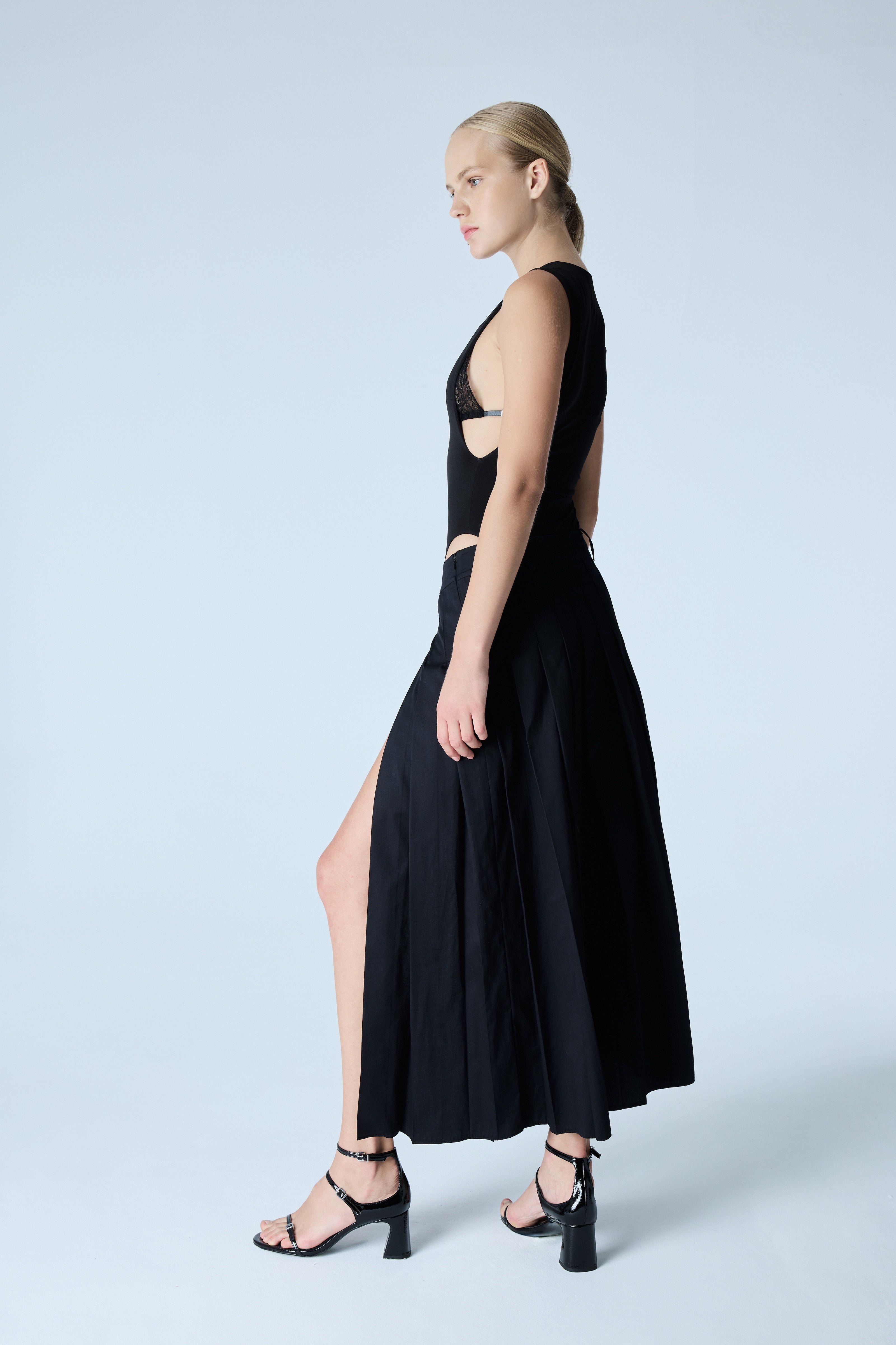 Elevate your wardrobe with our sophisticated MAXI SLIT SKIRT. This floor-length design features an elegant side slit that creates a graceful silhouette while allowing effortless movement. Crafted with premium fabric that drapes beautifully, it transitions seamlessly from daytime engagements to evening affairs. Pair with a tailored blouse for a refined ensemble that embodies timeless elegance.