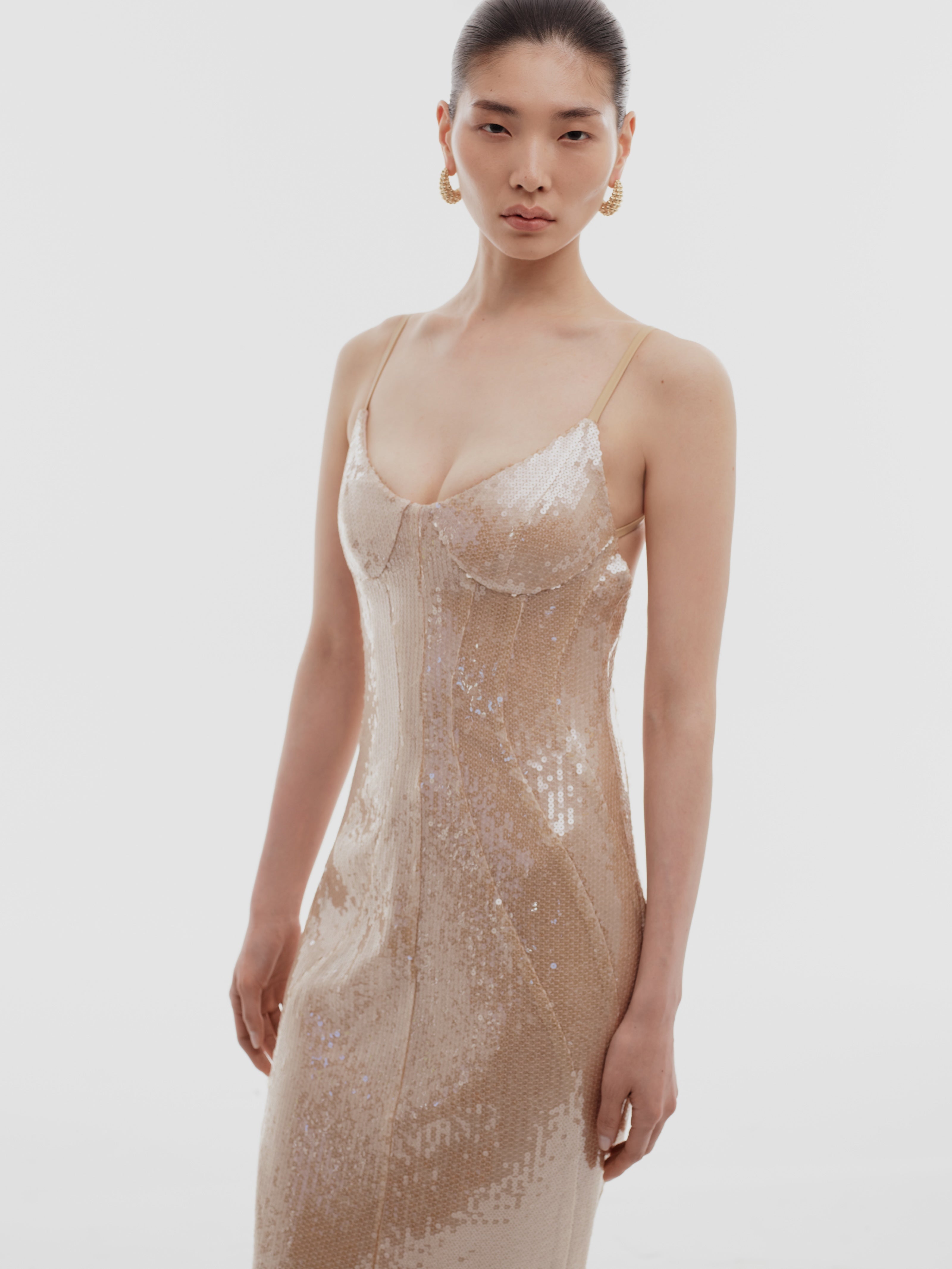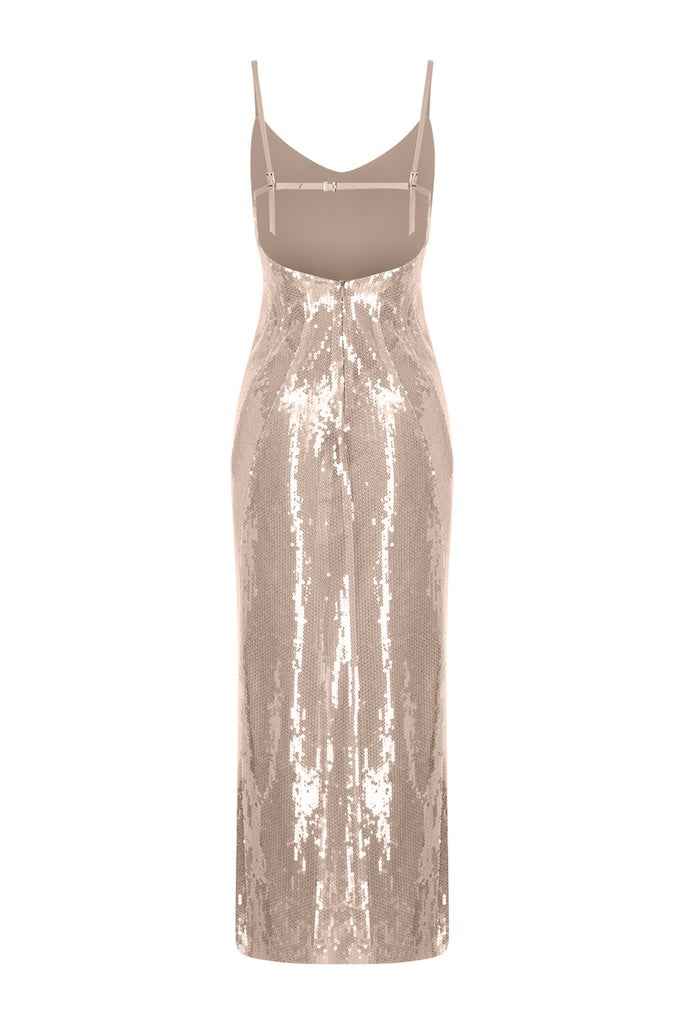 This midi sequin dress combines elegance with a touch of glamour, perfect for evening events or special occasions. Its shimmering sequins catch the light beautifully, creating a refined and sophisticated look. Designed to flatter your silhouette, this dress offers both style and comfort for a confident presence.