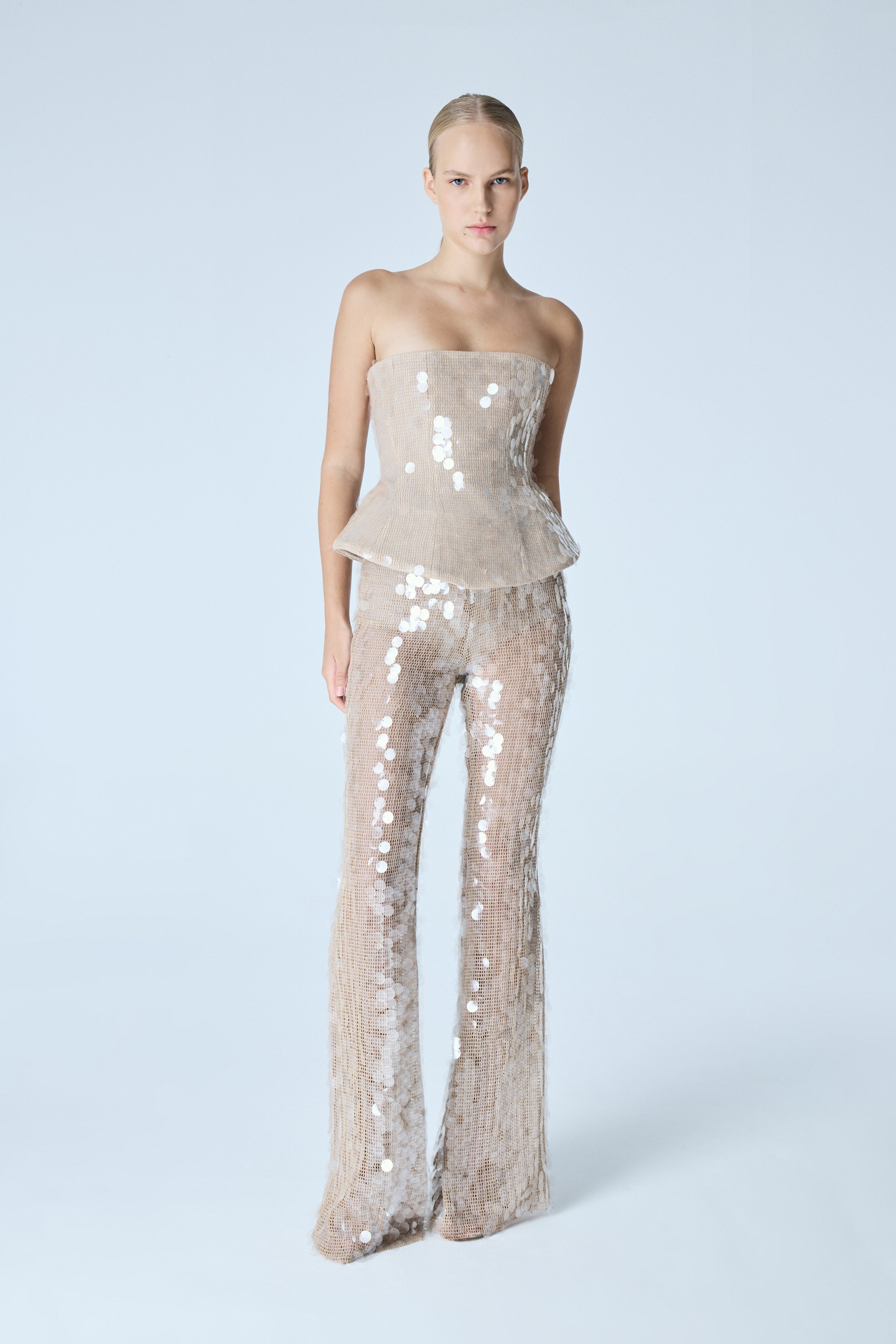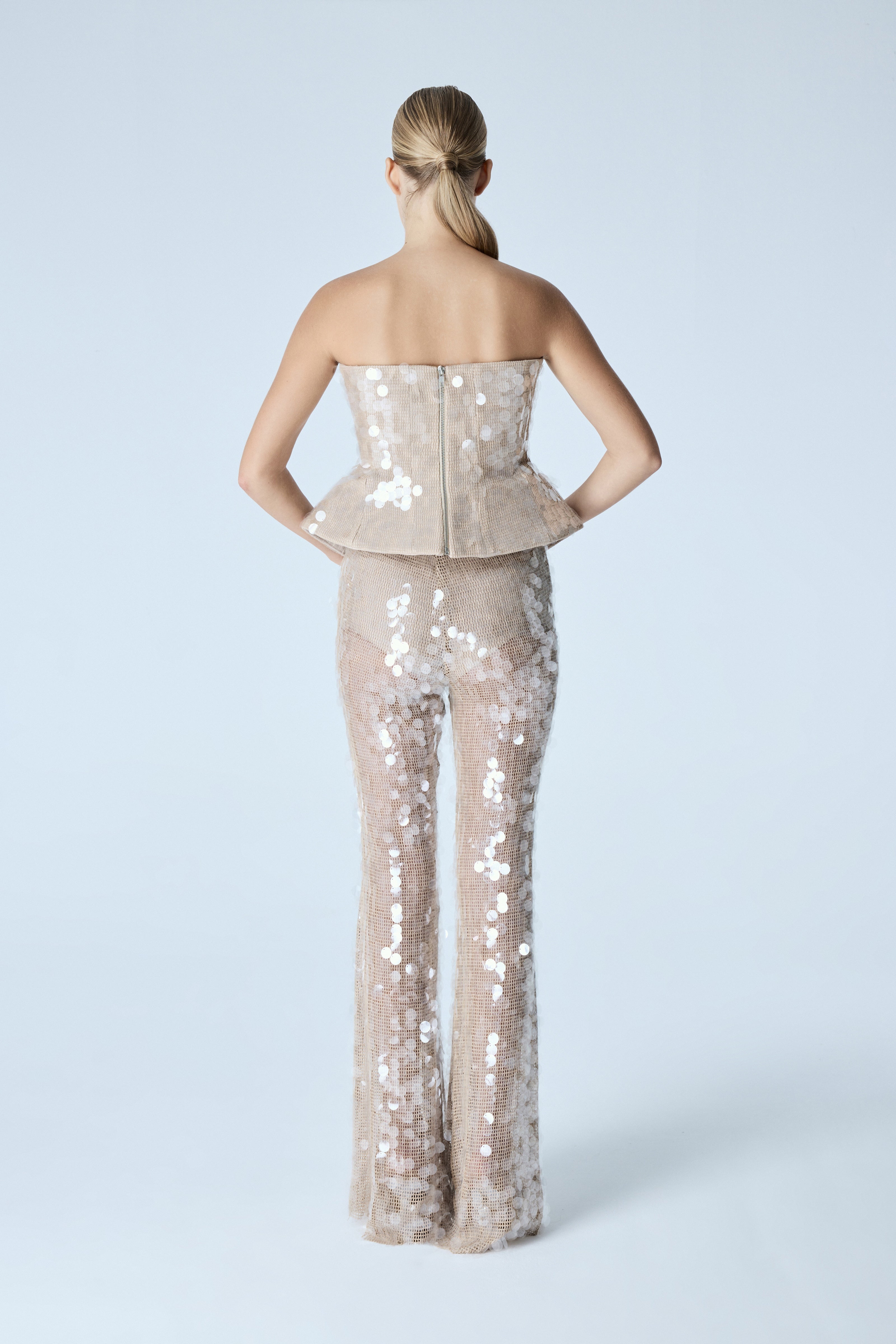 Step out in style with our SEQUIN FLARED PANT. Made from high-quality sequin material, these pants will add a touch of luxury and sophistication to any outfit. The flared design gives you a flattering silhouette while the sequins catch the light for a stunning, eye-catching look. Elevate your wardrobe with these premium pants.