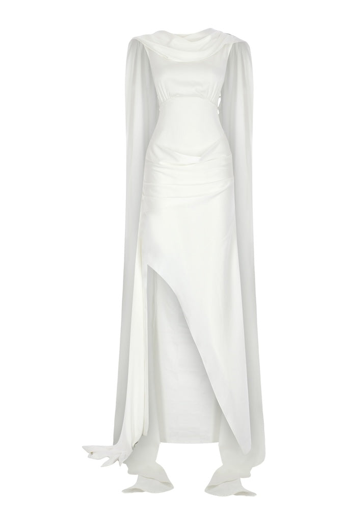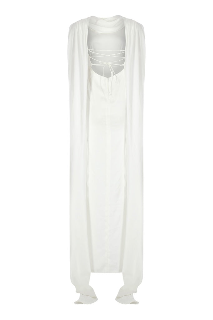 SHAWL DETAILED SATIN DRESS